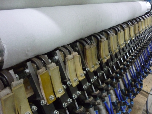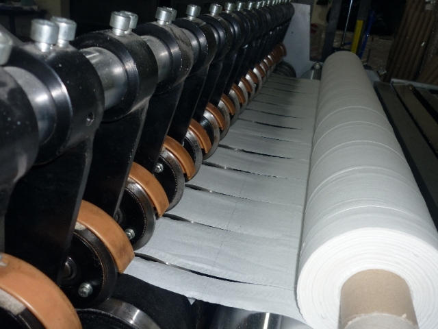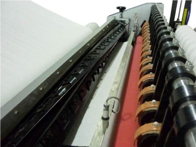 * Slitting unit placed over the winding rolls with adjustable blades.