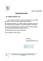 In the letter, ''JEESR INDUSTRIES'' Company expressed its appreciation for the services it received from AMACO Group, which it considered one of the most important "reliable suppliers." The letter described AMACO Group's services as "efficient and honorable," adding that AMACO distinguished performance was demonstrated by the attention of its teams to the details of all orders delivered. ''JEESR INDUSTRIES'' Company concluded its letter by confirming its desire to expand the contract in the coming years. It expressed its hope that AMACO Group will continue its "excellent" activities.